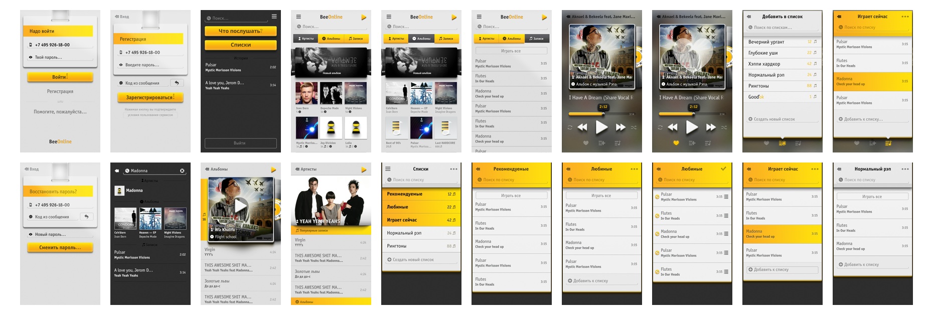 music.beeline.ru. Позднее Билайн разработал приложение для iPhone, в котором были использованы элементы созданного нами интерфейса.