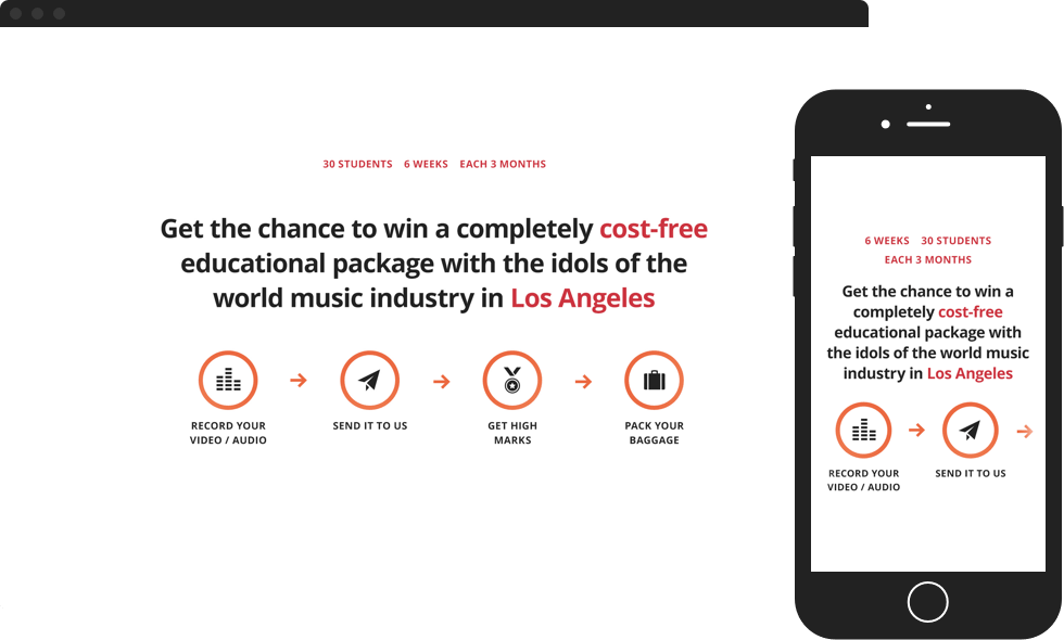 Стояла задача разработать фирменный стиль и адаптивный сайт с системой рейтингования участников, что позволило бы выбирать победителей на основании загруженных аудиозаписей или данных профиля в специализированных музыкальных сервисах.